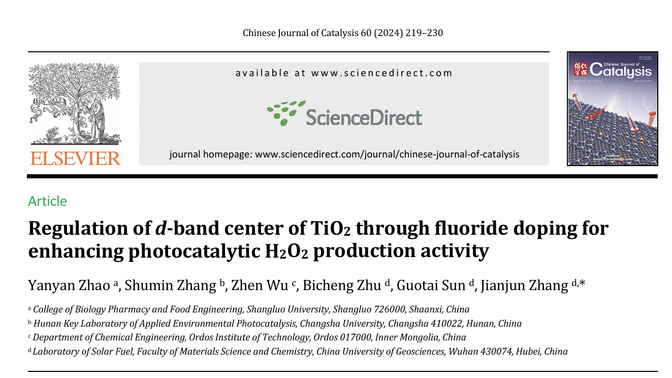 近日,我校生物學院趙艷艷副教授在光催化產雙氧水方面取得重要進展,相關工作以“Regulation of d-band center of TiO2through fluoride doping for enhancing photocatalytic H2O2production activity”為題,發表在國際著名期刊《Chinese Journal of Catalysis》(《催化學報》)(2024年影響因子為15.7,中科院一區TOP期刊)第60期上。該研究指出,金屬的d帶能級高低決定了催化劑表面活性位點對小分子物質的吸附強度,能級越...