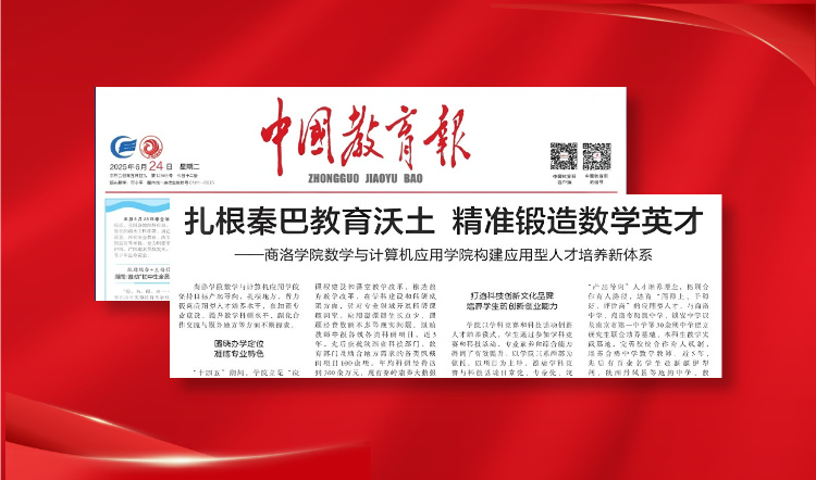 6月24日,《中國教育報》“高校新風”版面以《扎根秦巴教育沃土精準鍛造數學英才——商洛學院數學與計算機應用學院構建應用型人才培養新體系》為題刊發專題報道。文章從“圍繞辦學定位凝練專業特色”“聚焦專業與課程建設深化內涵發展”“打造科技創新文化品牌培養學生的創新創業能力”“校校、校企合作堅持‘產出導向’”四個方面全面介紹了我校數計學院扎根地方構建應用型數學人才培養新體系的實踐探索和成果經驗。(文/王鵬...