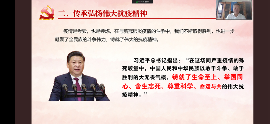 ?為深化大學生思想政治教育,強化師生疫情防控意識,引導廣大青年學生嚴格落實疫情防控各項工作要求,弘揚偉大抗疫精神,以實際行動迎接黨的二十大勝利召開,8月31日下午,校領導張志昌、范新會、彭虎軍、劉勇、劉寶盈、王新軍、郭瑾以“云端授課”的形式,為全體學生講授“開學第一課”。本次“開學第一課”以“弘揚偉大抗疫精神 喜迎黨的二十大召開”為主題。校領導們圍繞“科學理性認識本輪疫情;傳承弘揚偉大抗疫精神;學...