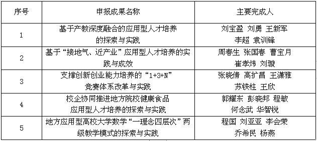 根據(jù)《陜西省教育廳陜西省人力資源和社會保障廳關(guān)于開展2019年高等教育教學(xué)成果獎評審工作的通知》(陜教〔2019〕254號)文件精神,我校認真組織開展高等教育教學(xué)成果獎申報工作,經(jīng)各院(部)論證申報,校內(nèi)外專家網(wǎng)評、會評,2019年10月9日學(xué)校教學(xué)工作委員會審定,擬推薦《基于產(chǎn)教深度融合的應(yīng)用型人才培養(yǎng)的探索與實踐》等5個項目(見下表)申報2019年陜西省高等教育教學(xué)成果獎,現(xiàn)予以公示。