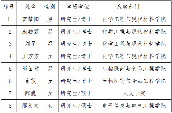 商洛學院2020年第七批擬招聘人員名單(8人)