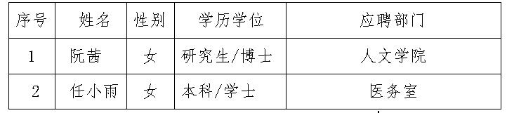 商洛學院2020年第十批擬招聘人員名單(2人)