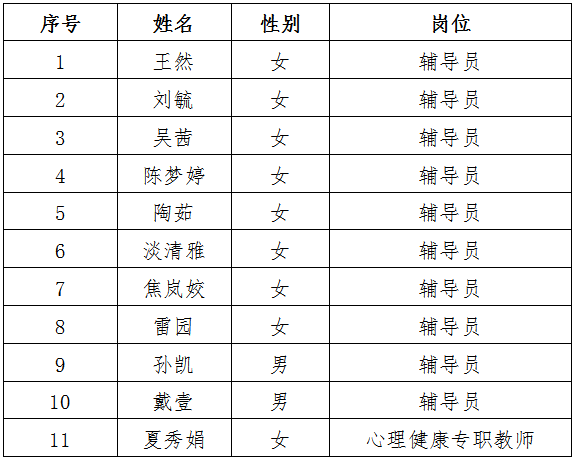 附件:商洛學院2021年輔導員及心理健康專職教師擬錄用人員名單