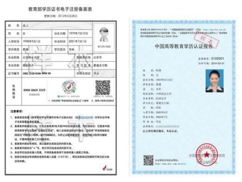 除上述對應類別應該提交的材料外,還須上傳教育部留學服務中心出具的《國外學歷學位認證書》原件。示范照片如下: