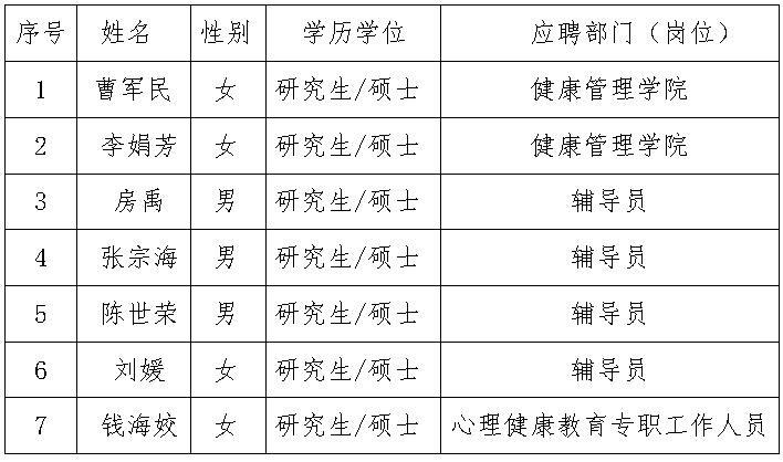 商洛學院2019年第五批招聘人員名單(7人)