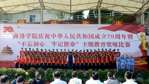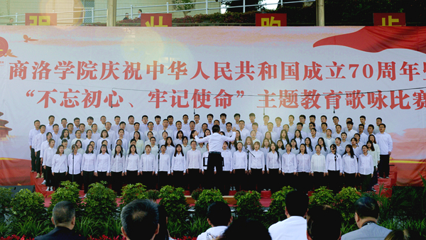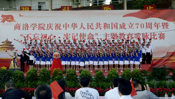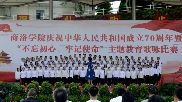 “憶往昔崢嶸歲月,抒今朝愛國情懷。”9月25日下午,我校慶祝中華人民共和國成立70周年暨“不忘初心、牢記使命”主題教育歌詠比賽在校體育場舉辦。校領導龍治剛、范新會、彭虎軍、劉寶盈、劉勇出席活動并與師生同臺竟唱。全體教職工和2019級學生4000余人觀看了比賽。11支代表隊用優美的旋律和嘹亮的歌聲謳歌中國共產黨帶領全國人民走過的波瀾壯闊的70年光輝歷程,表達對祖國母親的熱愛與祝福。