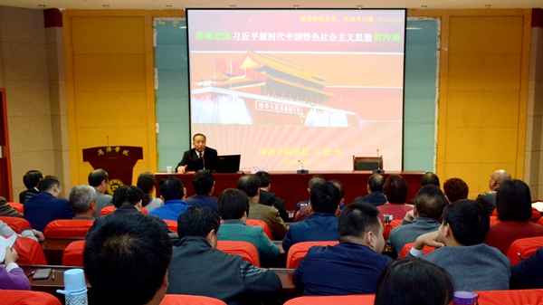 根據我校“不忘初心、牢記使命,做新時代合格黨支部書記”培訓班課程安排,10月30日下午,校紀委原書記王思懷教授以《準確把握習近平新時代中國特色社會主義思想的內涵》為題為全校黨總支書記、黨支部書記作專題報告。