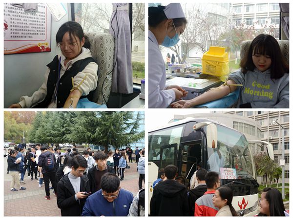 啟動儀式結束后,市中心血站流動采血車先后在我校圖書館和晨曦園駐扎采血。流動獻血車前擺放了《獻血者健康檢查要求》、《無償獻血用血報銷須知》等相關宣傳展板。獻血的師生在流動獻血車前排起了長隊,在市中心血站工作人員的指導下完成了填表及初篩化驗等準備工作后,有序地進行獻血,工作人員在師生獻血完畢后細心地叮囑注意事項,并為獻血師生辦理獻血證,發放獻血紀念品。