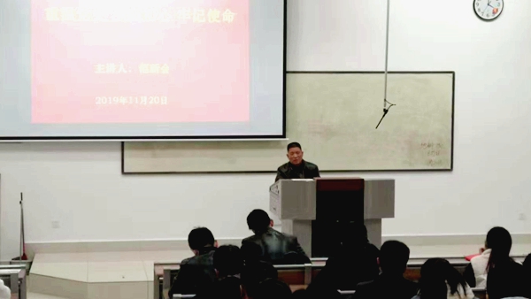 11月20日下午,校黨委副書記、校長范新會以《重溫黨史不忘初心牢記使命》為題為建工學院全體學生黨員講授專題黨課。