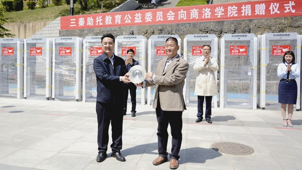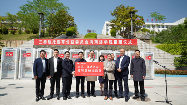 4月26日,三秦助托教育公益委員會向我校捐贈一批醫用口罩、體感消毒門及智慧校園設備,商洛市委副書記、市長鄭光照,三秦助托教育公益委員會首席執行官、億和盛豐集團董事局主席黃鵬,三秦助托教育公益委員會執行官、中建海峽建設發展有限公司陜西區域市場部總經理郭娜,校黨委書記龍治剛,校長范新會,副校長劉勇出席捐贈儀式。儀式由副校長王新軍主持。