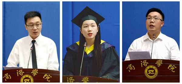 教師代表、經(jīng)濟(jì)管理學(xué)院董朕博士,畢業(yè)生代表、生物學(xué)院制藥1602班王茜同學(xué)及在校生代表、人文學(xué)院孫增印同學(xué)分別作了發(fā)言,為畢業(yè)生們送去美好祝福,祝愿每一位畢業(yè)生前程似錦、事業(yè)有成,擁有幸福的人生。藝術(shù)學(xué)院畢業(yè)生張倩說,在今年如此特殊的形勢下,學(xué)校為畢業(yè)生精心策劃組織畢業(yè)典禮,同學(xué)們非常感動,大家會帶著母校的殷切期望和祝福勇敢出發(fā),踏上人生新的征程。