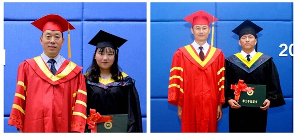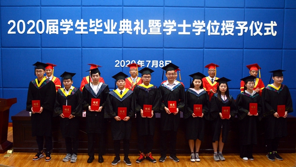 畢業(yè)典禮在校歌《正道直行做棟梁》中圓滿結(jié)束。在隨后舉行的學(xué)士學(xué)位授予儀式上,畢業(yè)生們依次走上主席臺,黨委副書記彭虎軍、副校長劉勇分別為獲得學(xué)士學(xué)位的畢業(yè)生正冠撥穗、頒發(fā)學(xué)位證書,并與同學(xué)們合影留念。