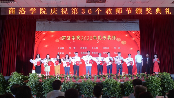 在全場熱烈的掌聲中,校領導分別為我校2020年先進集體、入選省級人才項目或獲得省市人才稱號者、我校2020年優秀教師、我校2020年優秀教育工作者、師德師風先進個人、學生工作、科技工作、教學工作榮譽獲得者頒發了獎牌和榮譽證書。伴隨著輕松歡快的背景音樂和電子屏幕不斷滾動著的表彰名單,一批批獲獎者邁著矯健的步伐先后上臺,從校領導手中接過榮譽證書。頒獎校領導與受表彰的教師們親切握手、合影留念,祝福他們節日快樂、幸福安康。現場學生紛紛上臺為受表彰的教師們送上鮮花和誠摯的祝福,感謝老師們的教育之恩和培育之情。