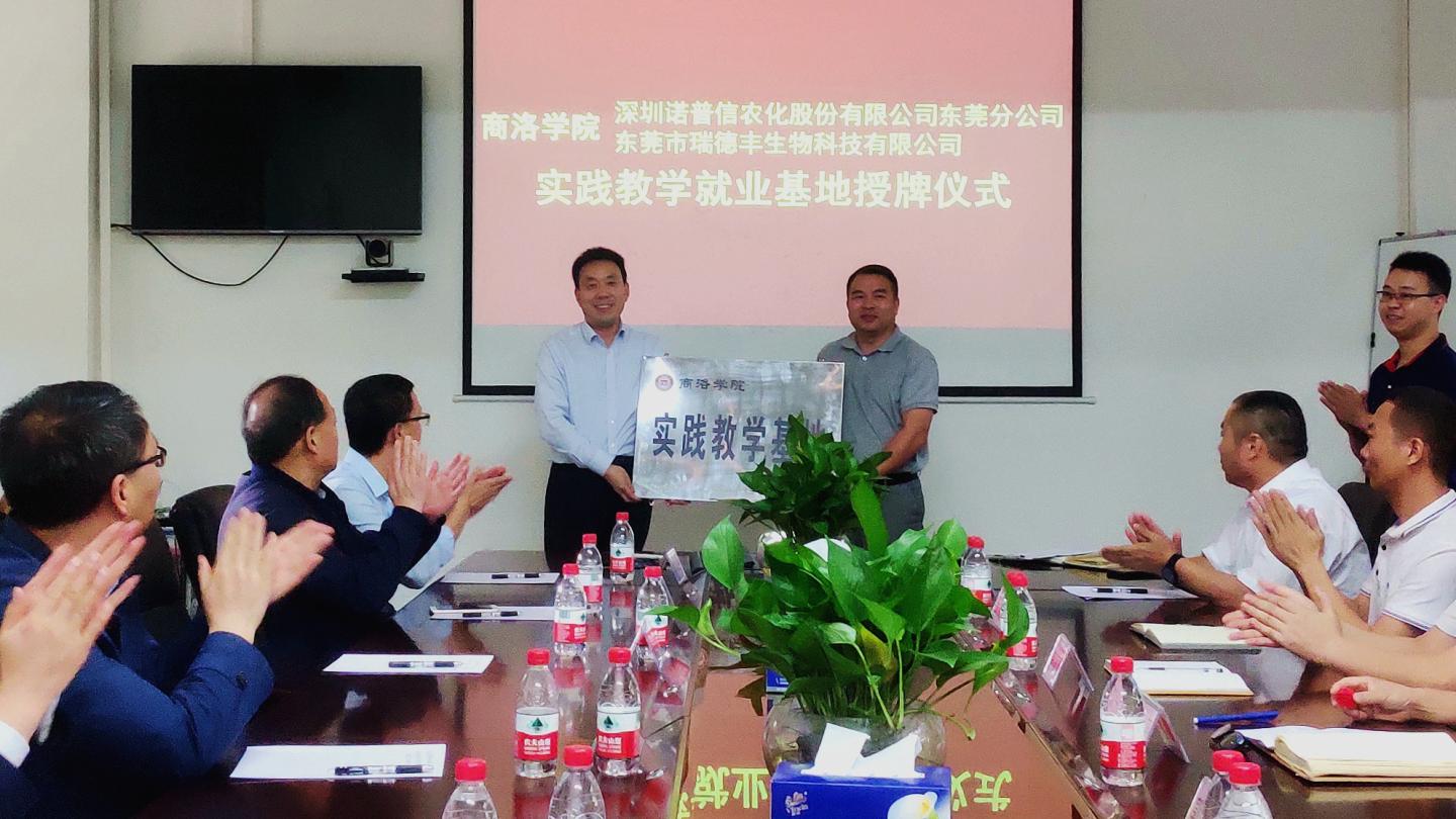 在廣東省東莞市,龍治剛一行參觀考察了東莞市立敏達(dá)電子科技有限公司,與諾普信農(nóng)化股份有限公司東莞分公司、東莞市瑞德豐生物科技有限公司相關(guān)負(fù)責(zé)人進(jìn)行了座談交流,并為校企合作共建實(shí)踐教學(xué)基地授牌。