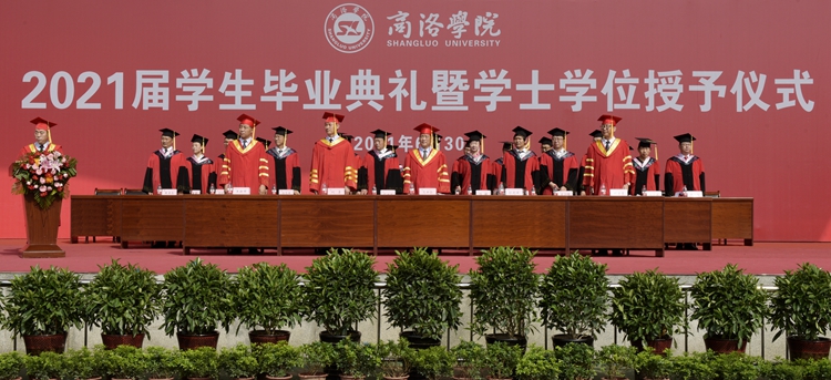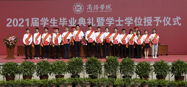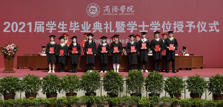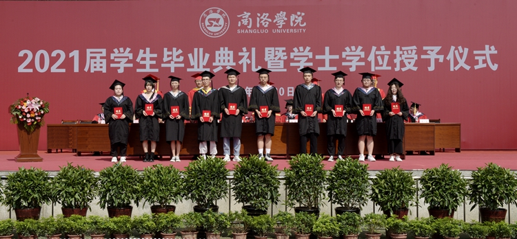 劉寶盈宣讀了2021屆畢業生資格審查結果通報、本科生學士學位授予決定、陜西省高校優秀畢業生和優秀學生干部名單、商洛學院優秀畢業生表彰決定、“奉獻基層 服務邊疆”優秀畢業生表彰決定、校友總會聘任2021屆校友聯絡員通知。榮悅等117名學生被授予“優秀畢業生”榮譽稱號,曾炎陽等22名同學被評為“奉獻基層 服務邊疆”優秀畢業生,郭肇星等103名同學被聘任為2021屆校友聯絡員。在熱烈的掌聲中,校領導為優秀畢業生代表頒發了證書,為校友聯絡員頒發了聘書。