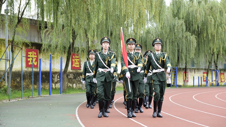 早晨7:10,全體師生整齊列隊、精神飽滿,商洛學院國旗護衛隊護送鮮艷的國旗緩緩進場?!吧腥A人民共和國國旗,奏唱中華人民共和國國歌,請全體師生行注目禮”,隨著主持人的口令,雄壯的《義勇軍進行曲》奏響,鮮艷的五星紅旗在國旗護衛隊員莊嚴軍禮的映襯下,迎風高高飄揚在校園上空。全體師生靜立肅穆,向莊嚴的國旗行注目禮,表達著自己最崇高的敬意。