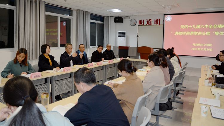 為深入學習黨的十九屆六中全會精神,推進全會精神進教材進課堂進頭腦,11月26日下午,我校召開黨的十九屆六中全會精神“三進”集體備課會。校黨委書記張志昌、副校長劉寶盈出席會議,教務處、中國特色社會主義理論體系研究中心負責人,馬克思主義學院相關負責人及全體教師參加會議。