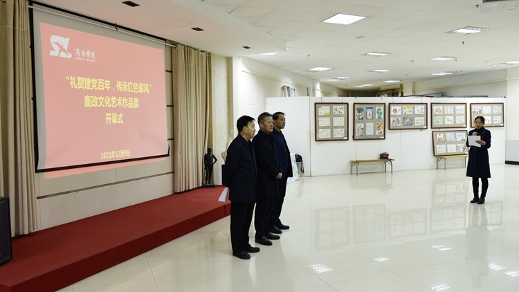 12月9日上午,由校紀委主辦、藝術學院承辦的“禮贊建黨百年,傳承紅色家風”廉政文化藝術作品展在北新街校區圖書館五樓藝術展廳開幕。校黨委書記張志昌,黨委副書記彭虎軍,副校長王新軍、劉寶盈出席開幕式并參觀作品展。各職能部門負責人、二級學院(部)黨政負責人以及藝術學院師生代表參加了開幕式。開幕式由紀委副書記田小莉主持。