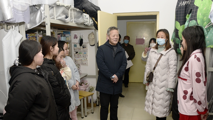 在與學生交流中,校領(lǐng)導詳細詢問了疫情期間學生們的思想動態(tài),在生活和學習上遇到的困難和問題,向同學們致以新年祝福,并叮囑同學們要做好個人防護,盡量減少外出,注意勞逸結(jié)合,妥善安排好學習和生活,有困難及時向?qū)W校反映。校領(lǐng)導表示,學校將不斷提升服務(wù)保障水平,努力解決同學們學習生活中的困難,全力以赴為同學們的安全保駕護航。