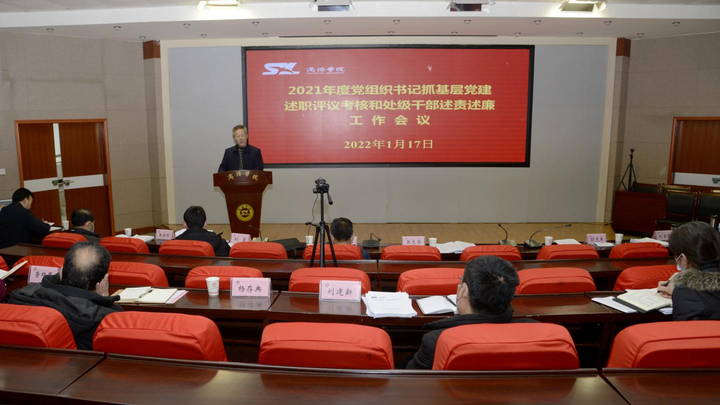 1月17日,我校采取線上線下相結(jié)合的方式召開2021年度黨組織書記抓基層黨建述職評議考核和處級干部述職述廉工作會議,聽取各黨總支、直屬黨支部書記履行抓基層黨建工作職責(zé)情況述職及處級干部述責(zé)述廉。全體校領(lǐng)導(dǎo)出席現(xiàn)場會議。校黨委委員,紀(jì)委委員參加現(xiàn)場會議。8名黨總支(直屬黨支部)書記及6名處級干部進行現(xiàn)場述職。其余8個黨總部、直屬黨支部書記及68名處級干部人員采取書面形式述職和述責(zé)述廉。現(xiàn)場會議由黨委副書記彭虎軍主持。