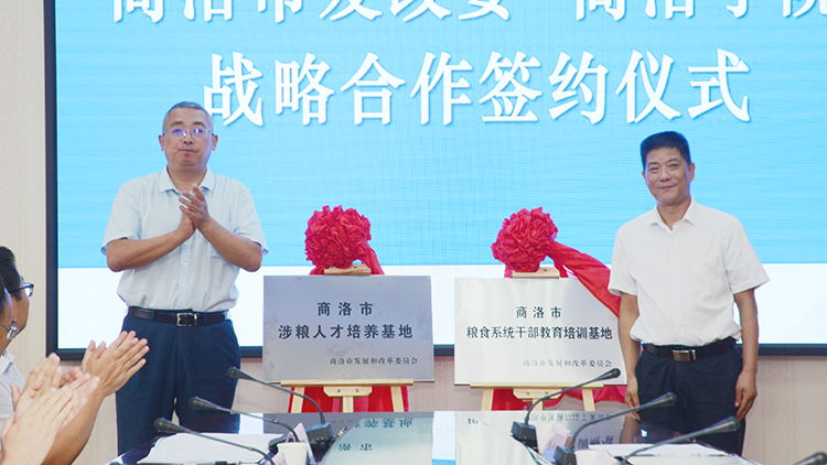 為深入貫徹國家重大戰略決策,強化與地方政府在共同富裕、涉糧人才培養和科技創新、秦嶺生態環境保護等重點領域的合作,進一步提升服務地方能力,7月19日,我校與商洛市發展和改革委員會舉辦戰略合作簽約儀式。商洛市委常委、常務副市長陳璇出席簽約儀式并講話。市委組織部常務副部長谷凡,商洛市發改委主任王宇鵬、副主任彭書旺出席簽約儀式。校黨委書記張志昌主持簽約儀式。校長范新會、副校長王新軍分別代表學校簽署協議并為共建機構揭牌。