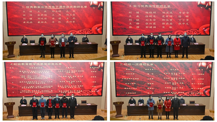 大會對我校2022年度優秀教案、優秀電子課件獲獎教師,優秀實習指導教師、優秀畢業論文指導教師,校級教育教學成果獎、校級一流課程、教育教學研討會優秀論文、優秀組織單位、校級課程思政講課比賽獲獎教師、陜西省第四屆本科高校課堂教學創新大賽獲獎教師、第八屆中國國際“互聯網+”大學生創新創業大賽指導教師、陜西省普通本科高校高等教育教學成果獎獲獎教師進行了表彰。出席大會的校領導為受表彰的集體和個人頒發了證書。