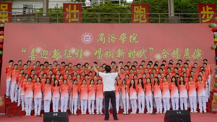 為貫徹落實(shí)黨的二十大精神和中省關(guān)于加強(qiáng)新時(shí)代美育工作相關(guān)文件要求,推進(jìn)學(xué)校美育改革發(fā)展,6月21日下午,我校“喜迎新征程 唱響新時(shí)代”主題合唱藝術(shù)展演活動(dòng)于北新街校區(qū)體育場成功舉辦。校黨委書記張志昌,校長范新會(huì),黨委副書記劉勇,副校長劉寶盈、王新軍、郭瑾出席活動(dòng)并參與合唱。學(xué)校美育工作領(lǐng)導(dǎo)小組相關(guān)職能部門主要負(fù)責(zé)人,各二級(jí)學(xué)院黨政負(fù)責(zé)人,各合唱團(tuán)成員及師生代表千余人現(xiàn)場觀看展演。