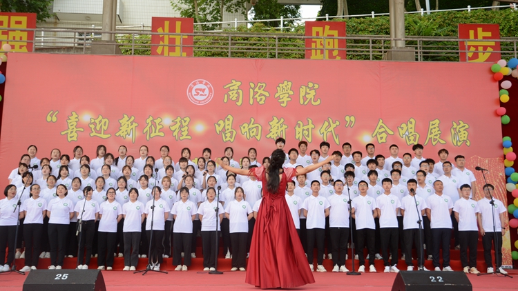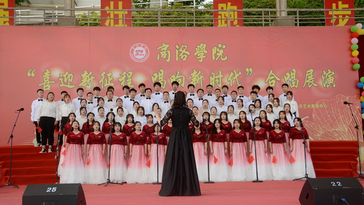 展演中,10個(gè)二級(jí)學(xué)院合唱團(tuán)和教職工代表隊(duì)合唱團(tuán)依次登臺(tái)亮相,傾情演繹紅色經(jīng)典曲目,用激揚(yáng)的歌聲抒發(fā)愛國情懷和強(qiáng)國之志,充分展現(xiàn)我校師生昂揚(yáng)向上的精神風(fēng)貌。《歌唱祖國》《走向復(fù)興》《我們走在大路上》《游擊隊(duì)之歌》《強(qiáng)軍戰(zhàn)歌》《秦嶺最美是商洛》等歌曲逐一精彩呈現(xiàn)。一曲曲高歌催人奮進(jìn),一陣陣掌聲心潮澎湃。