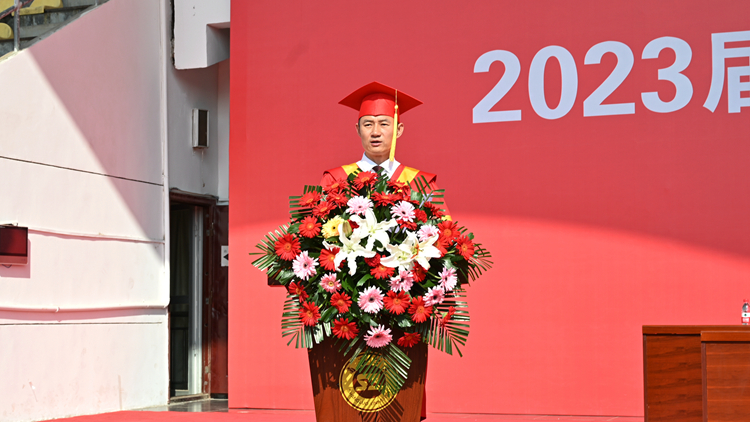 范新會寄語全體畢業生,一要堅定信念,樹立“大志向”,做不辱使命的接班人。二要實干奉獻,肩負“大擔當”,做勇毅前行的追夢人。三要砥礪奮斗,練就“大本領”,做堅韌執著的攀登者。四要心懷希望,厚植“大情懷”,做熱愛生活的樂天派。