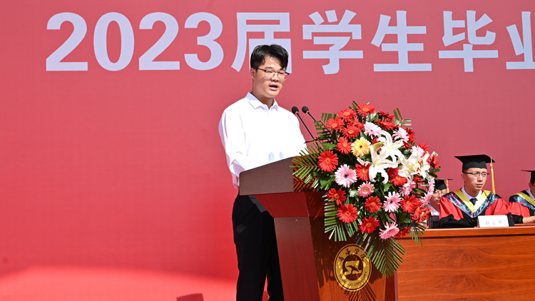 在校生代表、經濟管理學院學生劉奕喆代表全體在校生向2023屆畢業生送上最真摯的祝福,祝愿學長學姐們在新征途上大展宏圖、譜寫華章,此去繁華相送,再遇情誼依舊!