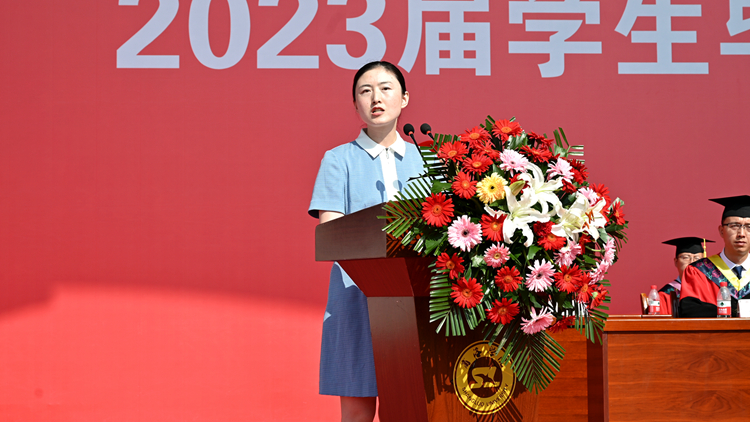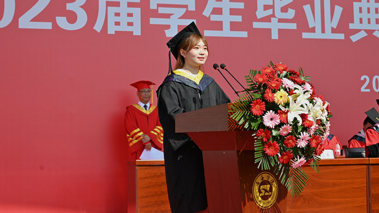 畢業生代表、生物醫藥與食品工程學院學生趙旭瑩分享了自己四年來的奮斗與收獲,并代表2023屆畢業生向校領導、師長以及一路相伴的同窗致以誠摯的感謝和祝福。她表示,精彩的大學生活即將結束,更加璀璨的藍圖在不遠的將來,她將與其他畢業生懷揣夢想,腳踏實地,以真才實學服務人民,以創新創造奉獻國家!