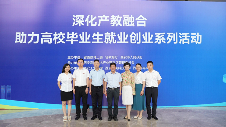 7月13日,由陜西省委教育工委、省教育廳、西安市人民政府主辦,西安高新區管委會承辦,西安工業大學、西安建筑科技大學、西安郵電大學協辦的“陜西省深化產教融合助力高校畢業生就業創業系列活動”在西安高新區開幕。我校“雙聘院士”、中國工程院院士張生勇出席開幕式,并親臨我校科技成果展臺參觀指導。校長范新會參加開幕式。