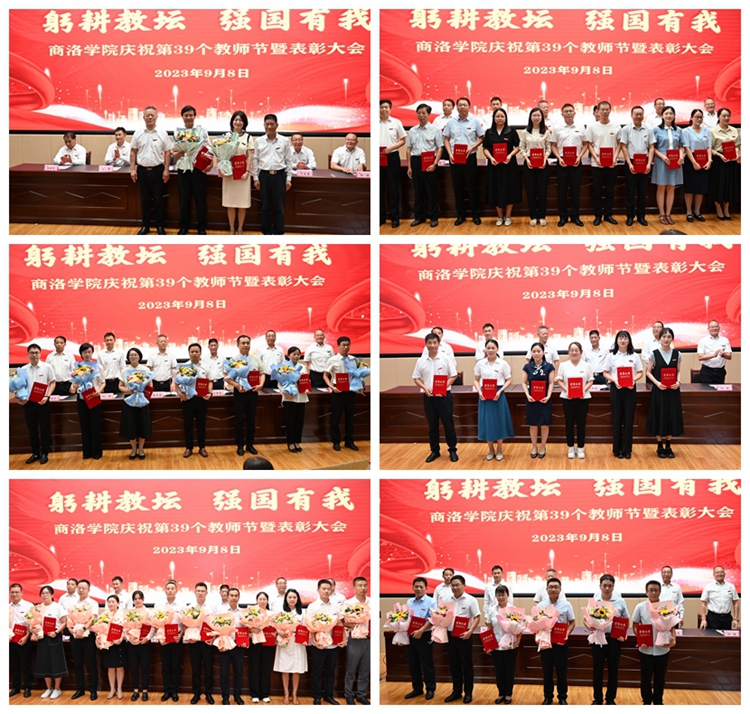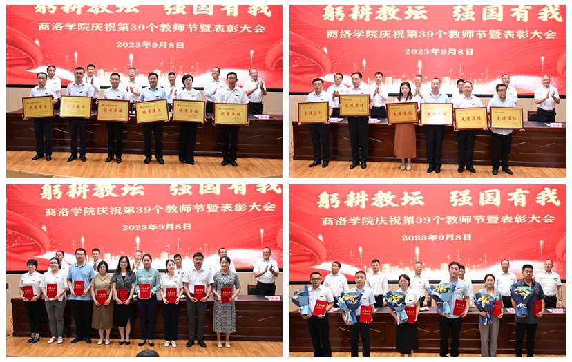 在熱烈的掌聲中,大會(huì)對(duì)我校榮獲2023年陜西省教書育人楷模、第十三屆陜西普通本科高等學(xué)校教學(xué)名師、商洛學(xué)院首屆黃大年式教師團(tuán)隊(duì)、2022年度全省教育系統(tǒng)先進(jìn)個(gè)人、學(xué)校目標(biāo)責(zé)任考核優(yōu)秀單位、2023年度先進(jìn)集體、優(yōu)秀教師、優(yōu)秀教育工作者、我最喜愛(ài)的老師以及在教學(xué)、科研和學(xué)生工作中取得突出業(yè)績(jī)的教師進(jìn)行了表彰。