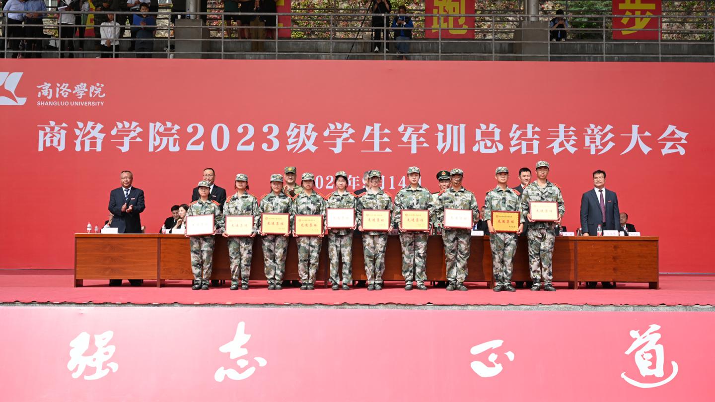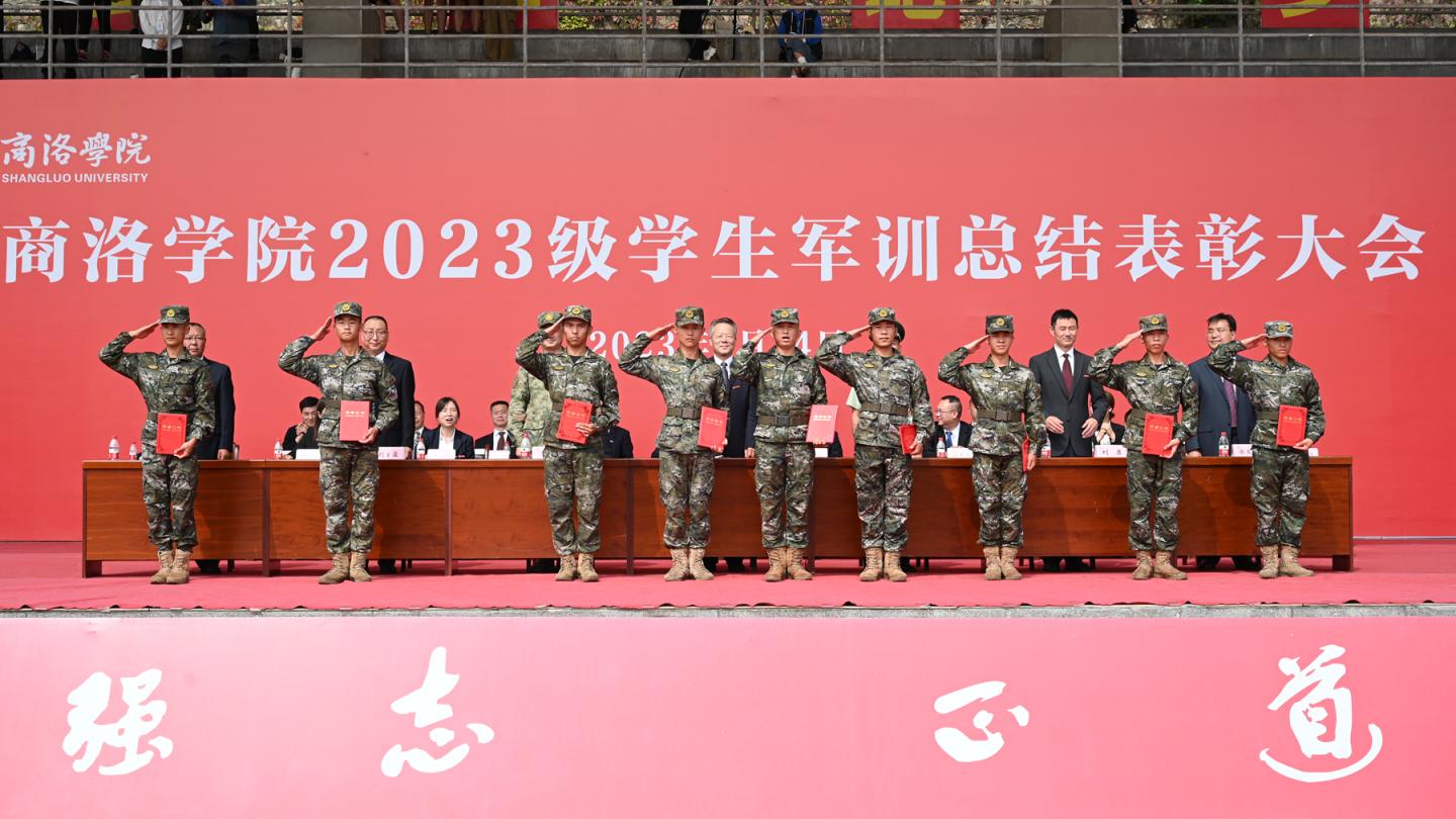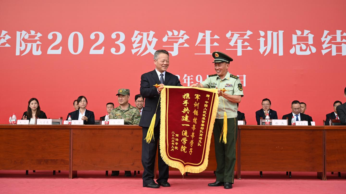 9月14日上午,我校舉行2023級學生軍訓總結表彰大會,檢閱2023級學生軍訓成果,表彰軍訓中涌現出的先進集體與個人。校黨委書記張志昌向中國人民武裝警察部隊商洛支隊中校副支隊長、商洛學院2023級學生軍訓團團長徐兵贈送了“軍訓錘煉莘莘學子攜手共建一流學院”的錦旗。黨委副書記劉勇講話,副校長劉寶盈主持大會。商州區人民武裝部中校副部長淮鋒出席大會。各二級院(部)黨政負責人,有關職能部門負責人,全體2023級參訓學生及輔導員參加大會。
