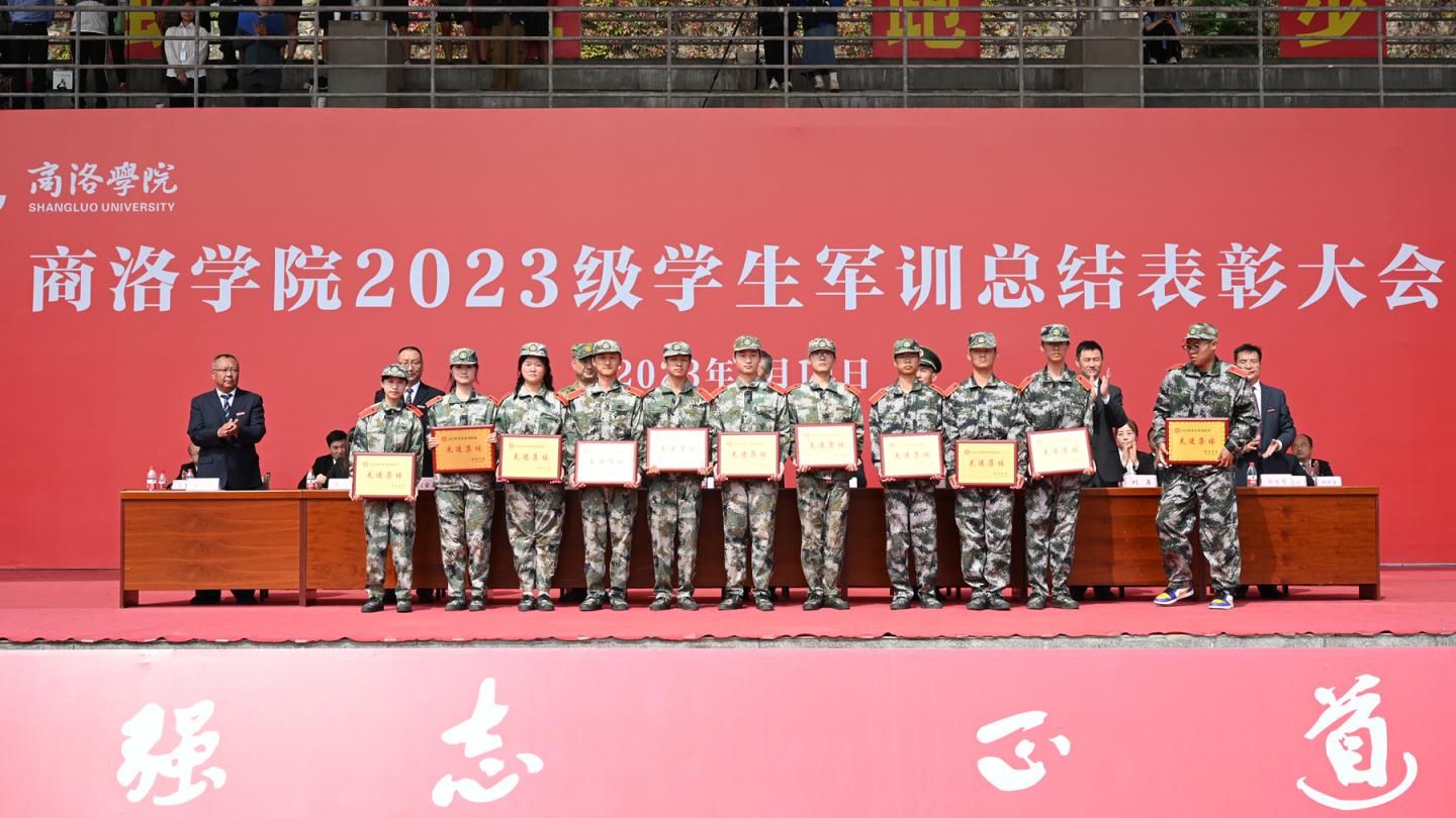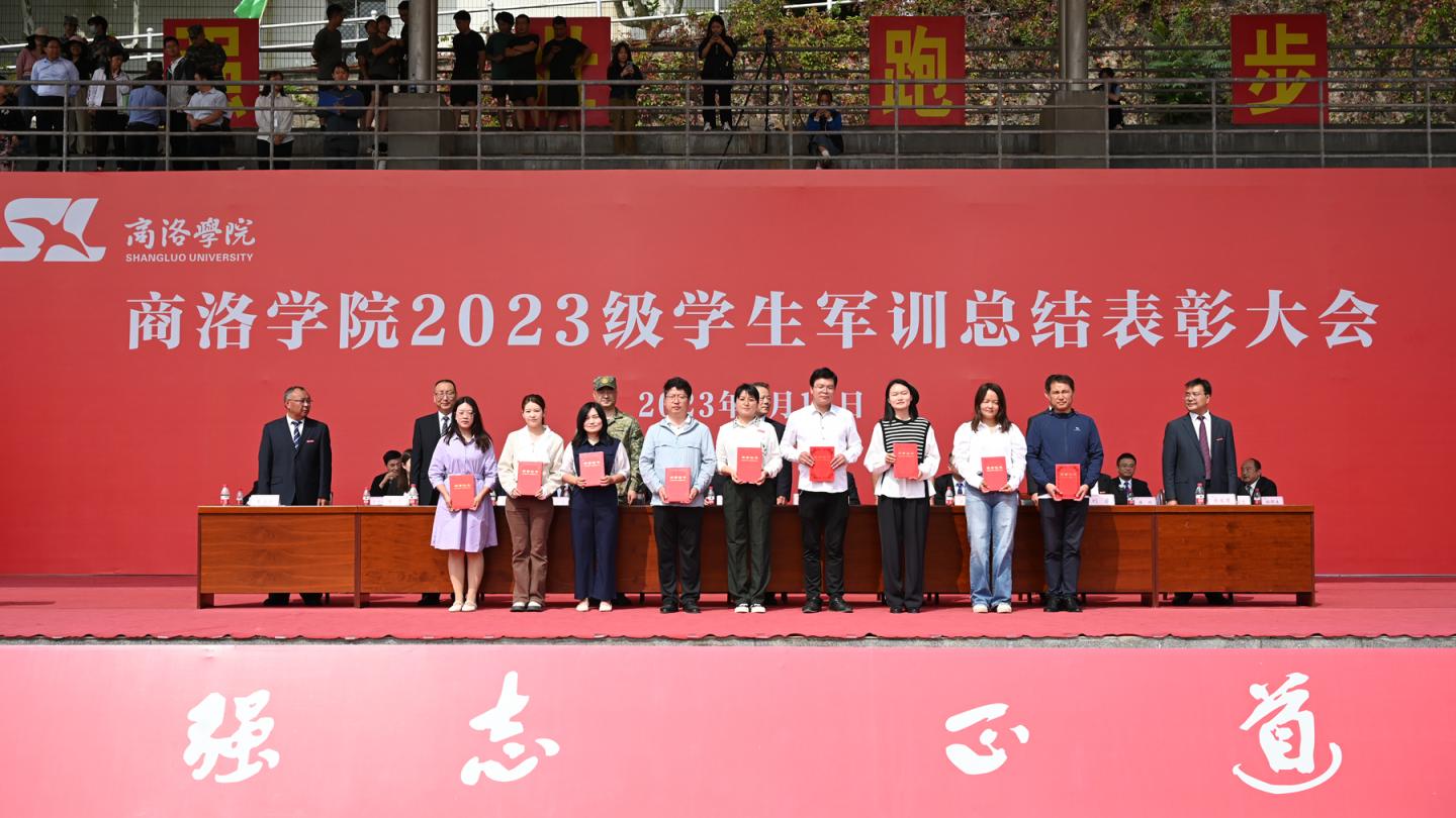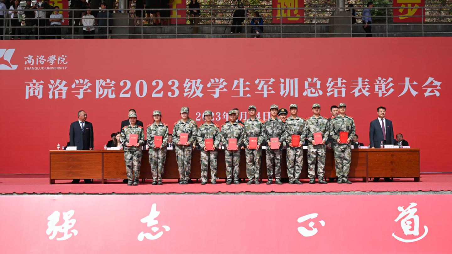 9月14日上午,我校舉行2023級學生軍訓總結表彰大會,檢閱2023級學生軍訓成果,表彰軍訓中涌現出的先進集體與個人。校黨委書記張志昌向中國人民武裝警察部隊商洛支隊中校副支隊長、商洛學院2023級學生軍訓團團長徐兵贈送了“軍訓錘煉莘莘學子攜手共建一流學院”的錦旗。黨委副書記劉勇講話,副校長劉寶盈主持大會。商州區人民武裝部中校副部長淮鋒出席大會。各二級院(部)黨政負責人,有關職能部門負責人,全體2023級參訓學生及輔導員參加大會。