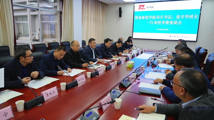 11月3日,渭南師范學院黨委書記卓宇、校長張守華一行14人來我校考察交流工作。校黨委書記張志昌、校長范新會熱情接待了卓宇、張守華一行。雙方圍繞學科專業(yè)建設、師資隊伍建設、服務地方等方面工作進行了全面深入廣泛的交流。