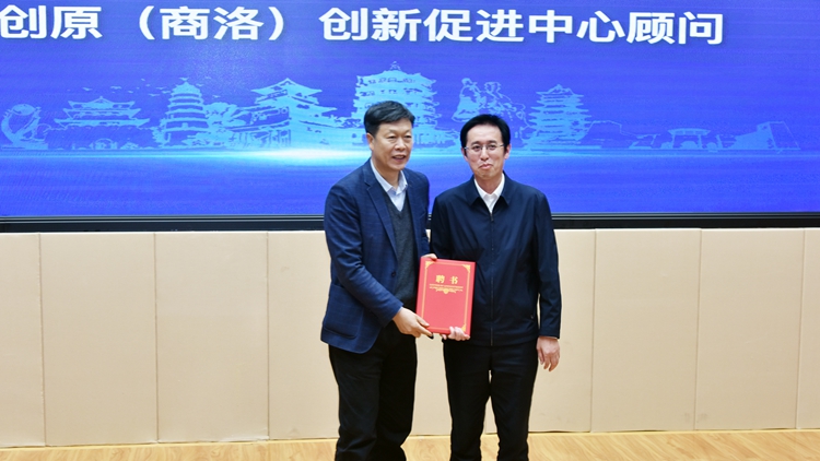 孫舉恒代表市委、市政府為陳發(fā)虎院士頒發(fā)秦創(chuàng)原(商洛)創(chuàng)新促進(jìn)中心顧問聘書。