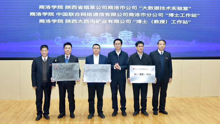 在熱烈的掌聲中,陳發(fā)虎、趙璟為“商洛康養(yǎng)產(chǎn)業(yè)研究院”揭牌。孫舉恒、張志昌共同為“秦嶺商洛生物醫(yī)藥產(chǎn)業(yè)知識產(chǎn)權(quán)研究中心”、“陜西省知識產(chǎn)權(quán)信息公共服務(wù)網(wǎng)點(diǎn)”、“商洛學(xué)院秦創(chuàng)原創(chuàng)新促進(jìn)中心工作站”揭牌。孫舉恒、范新會、王新軍共同為陜西煙草商洛分公司“大數(shù)據(jù)技術(shù)實(shí)驗(yàn)室”、中國聯(lián)通商洛分公司“博士工作站”、大西溝礦業(yè)有限公司“博士(教授)工作站”授牌,商洛市煙草局局長洪煒、商洛聯(lián)通公司總經(jīng)理李建慶、大西溝礦業(yè)有限公司總經(jīng)理聶建倉代表企業(yè)接牌。