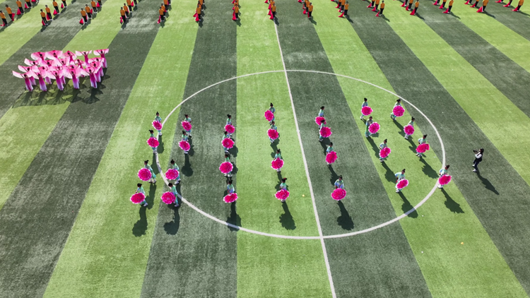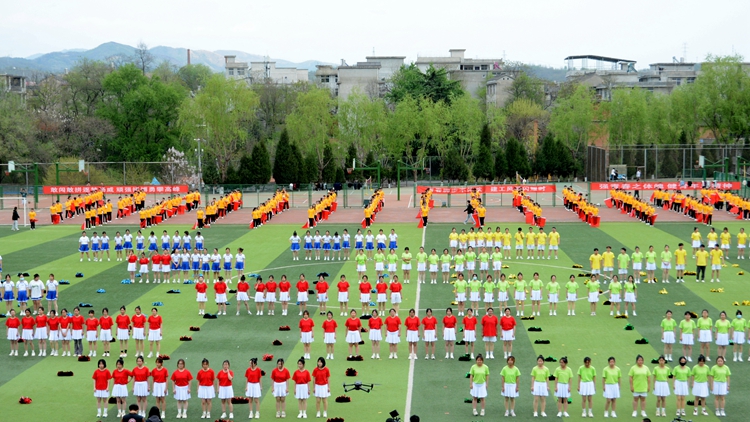 在開幕式表演中,電信學院大型團體操表演《奮進商院 禮獻祖國》驚艷綻放,240位學子在靈活變化的隊形中展露出深厚的愛國愛校之情,以無畏的勇氣和不懈的追求一起邁步向未來。健康管理學院的230余名學子步伐矯健,動作輕盈,為大家帶來活潑有力的啦啦操和洗手操表演,他們用行動向大家詮釋健康的真諦,呼吁大家參與健康生活,助力商洛“康養之都”建設。附屬小學的少年兒童以活潑可愛的身姿帶來舞蹈《盛世歡歌》,一起祝福祖國的明天天更藍、山更綠、水更清,經濟更繁榮、人民更幸福、國力更強盛!建工學院團體操表演以舞動的熱情撒播歡樂的陽光,用特有的創意和魅力展示出商院學子朝氣蓬勃的精神風貌,通過“站起來”“富起來”“強起來”三個環節,向在場觀眾勾勒出山河無恙、繁榮昌盛的盛世景象。
