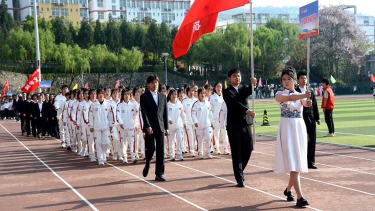 伴隨著激揚的《運動員進行曲》,國旗護衛隊、退役士兵方陣、彩旗方陣、花環方陣、裁判隊、各二級學院師生代表隊、附屬小學、附屬幼兒園和教職工代表組成的18個方陣邁著整齊穩重、鏗鏘有力的步伐依次走過主席臺,展現了我校師生昂揚向上的精神風貌。運動員代表楊振興、裁判員代表王蒙潔分別向大會宣誓。