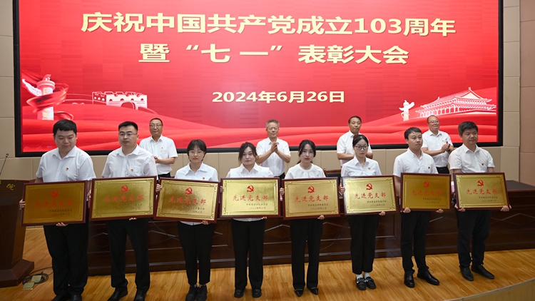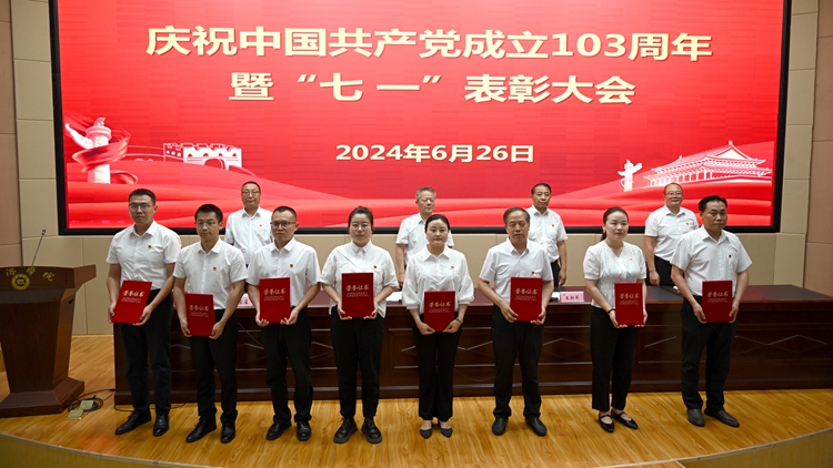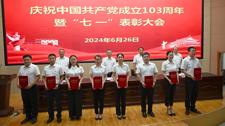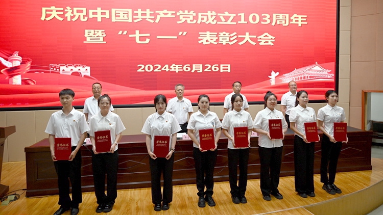6月26日下午,我校在圖書館二樓報告廳召開慶祝中國共產黨成立103周年暨“七一”表彰大會。校黨委書記張志昌出席大會并講話。大會對36名優秀共產黨員、15名優秀黨務工作者、3個先進基層黨委和13個先進黨支部進行表彰。黨委委員、副校長劉寶盈、王新軍、郭瑾出席大會并向受表彰集體和個人代表頒發獎牌證書。大會由劉寶盈主持。