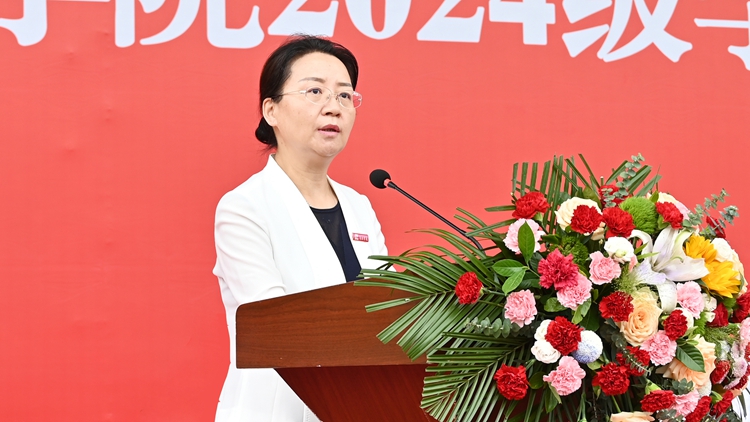 權(quán)雅寧代表學(xué)校熱烈歡迎2024級新生的到來,向承擔(dān)本次軍訓(xùn)任務(wù)的武警商洛支隊全體官兵表示崇高的敬意。她簡要回顧了我校建校48年來的發(fā)展歷程和近年來學(xué)校取得的顯著成績,并以《青春奮斗正當(dāng)時 不負(fù)韶華不負(fù)心》為題致辭,向2024級新生講授“開學(xué)第一課”。權(quán)雅寧寄語2024級新生,一是要做“心中有光”的青年,用心中的光照亮生命。希望同學(xué)們成為點燈者、照亮者、撐傘人,在成長過程中護住自己的心氣、心力、心光,用光明之眼看清自己的路、看清國家和時代的方向,用光明之心照亮未來變化紛繁的路。二是要做“腳下有路”的青年,用腳下的路丈量世界。希望同學(xué)們心中有星辰大海,手中有百萬雄兵,兼有利他、利己、利物、利事的心量,爭做大才、大智之人。三是要做“行為有戒”的青年,用行為之戒磨礪品行。要對自己的每一個行為有所要求,在成為有志、有識、有恒的青年路上,用每一寸光陰積累點滴進步。