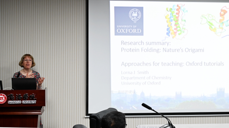 7月25日下午,牛津大學(xué)化學(xué)系教授Lorna J Smith應(yīng)邀來校交流訪問并為我校師生作題為《蛋白質(zhì)折疊:大自然的折紙藝術(shù)》的學(xué)術(shù)報告。校黨委委員、科技處處長程敏,國際合作與交流處處長張建芳,化材學(xué)院、生物學(xué)院和健康管理學(xué)院相關(guān)負責人以及相關(guān)專業(yè)師生代表參加報告會。