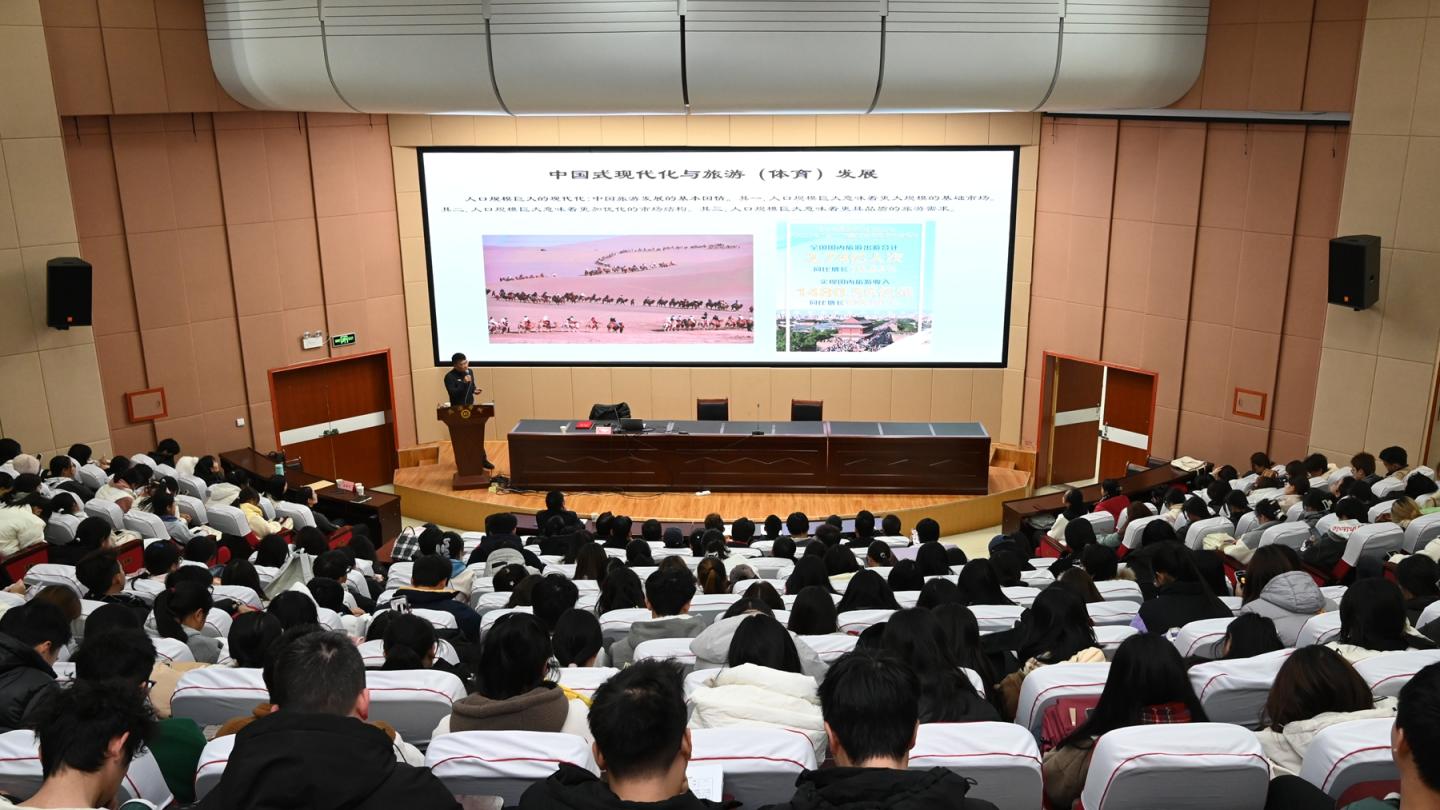 聘任儀式結束后,張婧教授作了題為《如何做好自己健康的第一責任人》的報告。她從影響健康的因素出發,提出“運動零食計劃”的新理念,對部分體育鍛煉案例進行分析,最終以研究成果反哺實踐應用。楊濤教授以《中國式現代化與體育旅游業高質量發展》為題,從中國式現代化與體育旅游發展、綠色發展理念的內涵與價值、體育旅游產業的高質量發展、綠色發展理念與高質量發展的邏輯關系、體育產業與健康養老、文化旅游融合發展五個方面展開詳細闡述,結合商洛實際情況提出了“體育+旅游+康養”的融合發展新模式。
