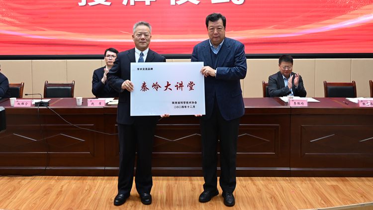 在熱烈的掌聲中,蔣莊德院士代表省科協為商洛學院“秦嶺大講堂”學術交流品牌授牌,張志昌代表學校接牌。