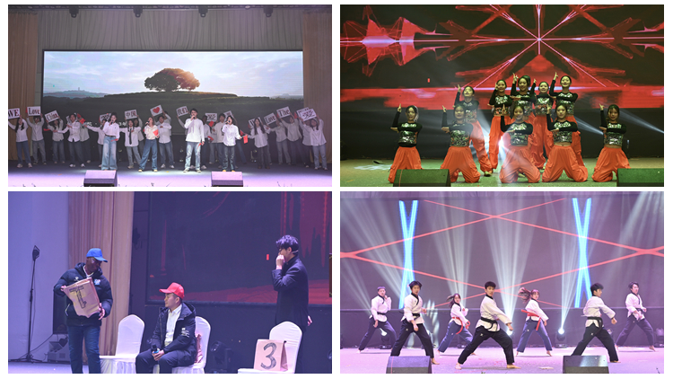 原創詩朗誦《遇見》,在時光長河的波光里回顧了學校發展歷程,歌頌了2024年逐光而行的不凡成就,激勵廣大師生與學校一道載夢飛翔。舞蹈《額爾古納河》展現了祖國山河的壯美與柔情,體現出人與自然的和諧共生。歌劇《沂蒙山》選段演繹了革命戰士大青山突圍、淵子崖戰役的崢嶸歷史。《我的大學時代》通過逗趣的相聲表演生動再現了課堂奇遇、宿舍笑談的幽默時刻。明快靈動的小合唱《唱得幸福落滿坡》,用歌聲把觀眾帶到了豐收的田野中,看到了農民臉上洋溢的幸福笑容。二胡獨奏《戰馬奔騰》飽含著勇往直前的力量,訴說著英雄們的壯志豪情。《戲曲聯唱》將眾多藝術形式巧妙聚集,唱念做打、五彩臉譜,一招一式盡顯東方之美。外籍教師羅杰一、王亮、艾瑪和國際創意課程學生合唱《We are the world》,用音樂展現了超越國界和文化的團結友愛。魔術表演《選擇》以絕妙的構思、精湛的手法為觀眾帶來無盡驚喜。舞蹈表演《醉春風》,在水墨煙雨中弄花影、戲春風,展現了草長鶯飛、杏花春雨的江南美景。《流行歌曲串燒》唱響青春之歌,給燦爛的成長歲月點燃生生不息的花火。《武動華章》將太極的柔、雙截棍的巧、跆拳道的剛匯聚一處,在動靜之間帶領觀眾走進武術世界。健身操舞《青春就這young》整齊劃一的動作、自信美麗的笑容,展現了商院學子積極向上的精神風貌。