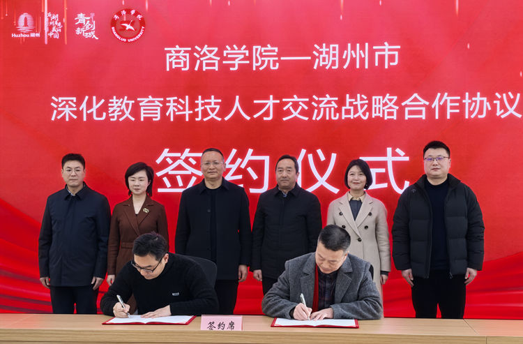 會上,朱新江對張向東一行表示熱烈歡迎,并對我校積極支持湖州經濟社會發展、支持就業人才戰略表示衷心感謝。朱新江以“精致”“厚重”“充滿張力”“承載使命”四個關鍵詞為題對湖州市市情和近年來招才引智的基本情況進行了簡要介紹,他回顧了湖州市與我校近年來在人才輸送與智力投送方面取得的成果。朱新江表示,湖州市人社系統將以此次揭牌儀式為契機,在人才招引、政策支持、產教融合等方面給予商洛學院全力支持,為湖州經濟社會和學校教育教學高質量發展提供“新動能”。