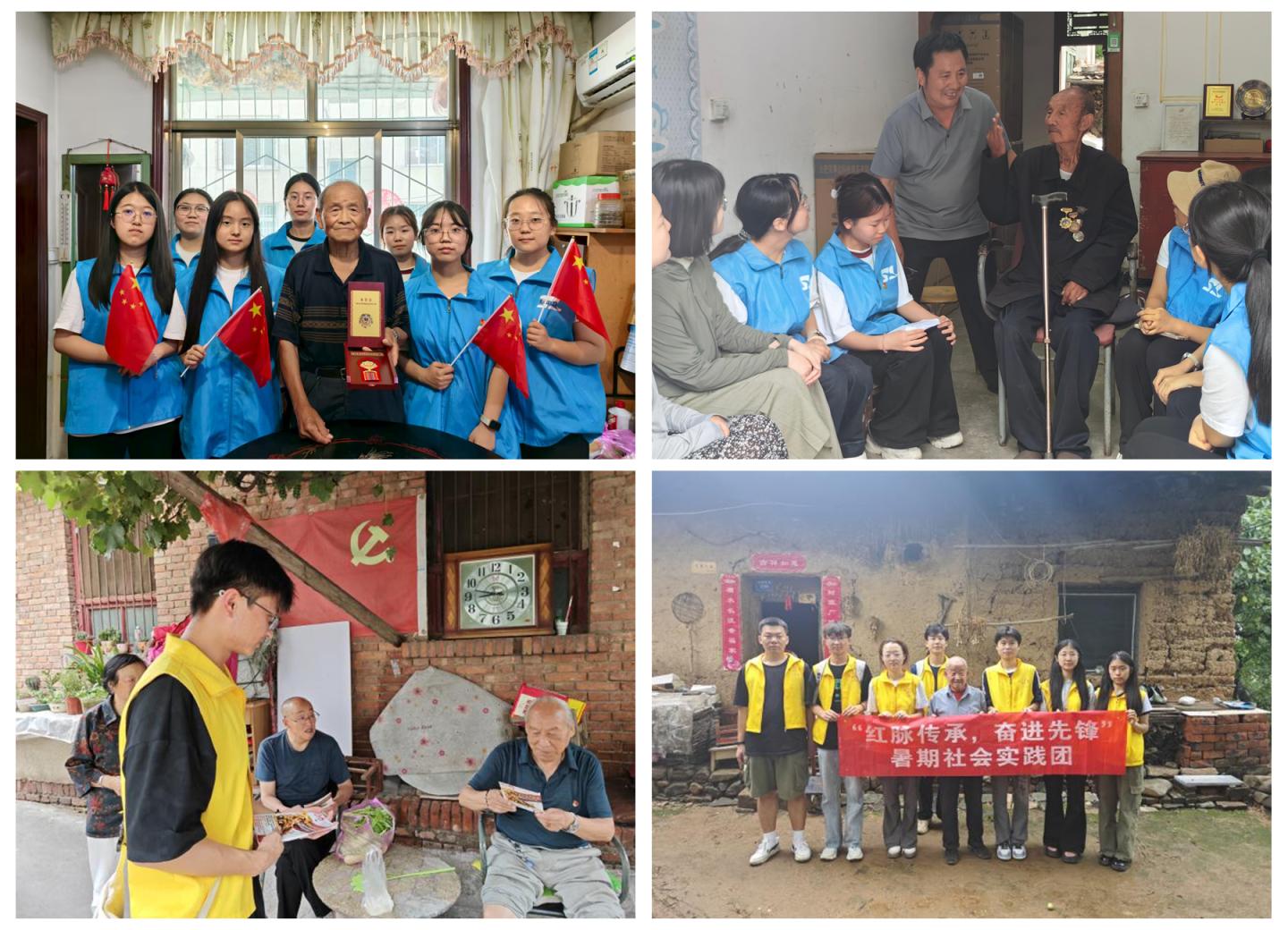 ——致敬功勛 汲取力量:電信學院實踐團走訪抗戰老兵周保印、抗美援朝老兵楊寶山;健康管理學院學子看望參戰老兵吳全明;建工學院的實踐團成員專程慰問老兵周作金、劉發元。學子們通過聆聽烽火故事,以實際行動踐行尊崇英雄的承諾。商州區退役軍人事務局特向學校發來感謝信,對暑期實踐團探訪老兵的實踐活動給予高度評價。
