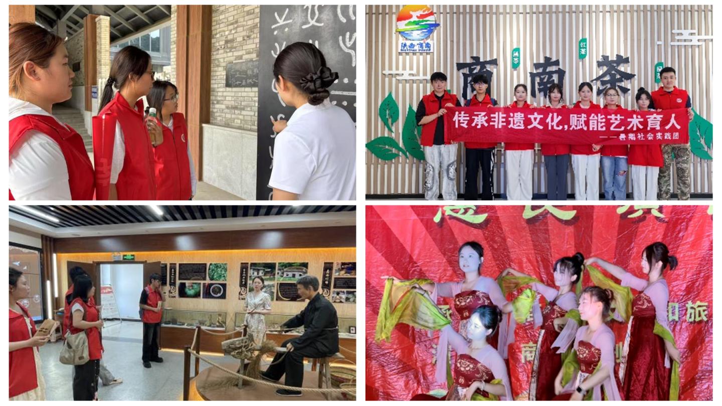 藝術學院多支分隊齊發力,構建非遺傳承立體網絡:“藝溯字源”小分隊在倉頡造字遺址創作文創作品;“傳承非遺 青春賦彩”實踐團學習“試馬花棍”舞技、記錄絨繡技藝;“傳承非遺文化 賦能藝術育人”實踐團聯合縣劇團開展“戲曲進鄉村”演出,繪制商南非遺資源圖譜。