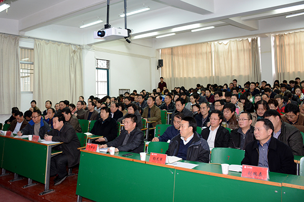 為進(jìn)一步推動(dòng)我校師生學(xué)習(xí)貫徹落實(shí)十八屆五中全會(huì)精神,12月9日,學(xué)校邀請(qǐng)陜西省委理論講師團(tuán)副團(tuán)長(zhǎng)黨寧教授為師生做了題為《貫徹落實(shí)黨的十八屆五中全會(huì)精神,為全面建成小康社會(huì)而奮斗》的專題報(bào)告。校黨委委員范新會(huì)、王思懷、魏書(shū)堂、彭虎軍、劉寶盈、劉端森、高榮發(fā),全校科級(jí)以上領(lǐng)導(dǎo)干部、輔導(dǎo)員,思政部、人文學(xué)院政教系全體教師,“青馬”工程學(xué)員和學(xué)生代表聽(tīng)取了報(bào)告。報(bào)告會(huì)由紀(jì)委書(shū)記王思懷主持。